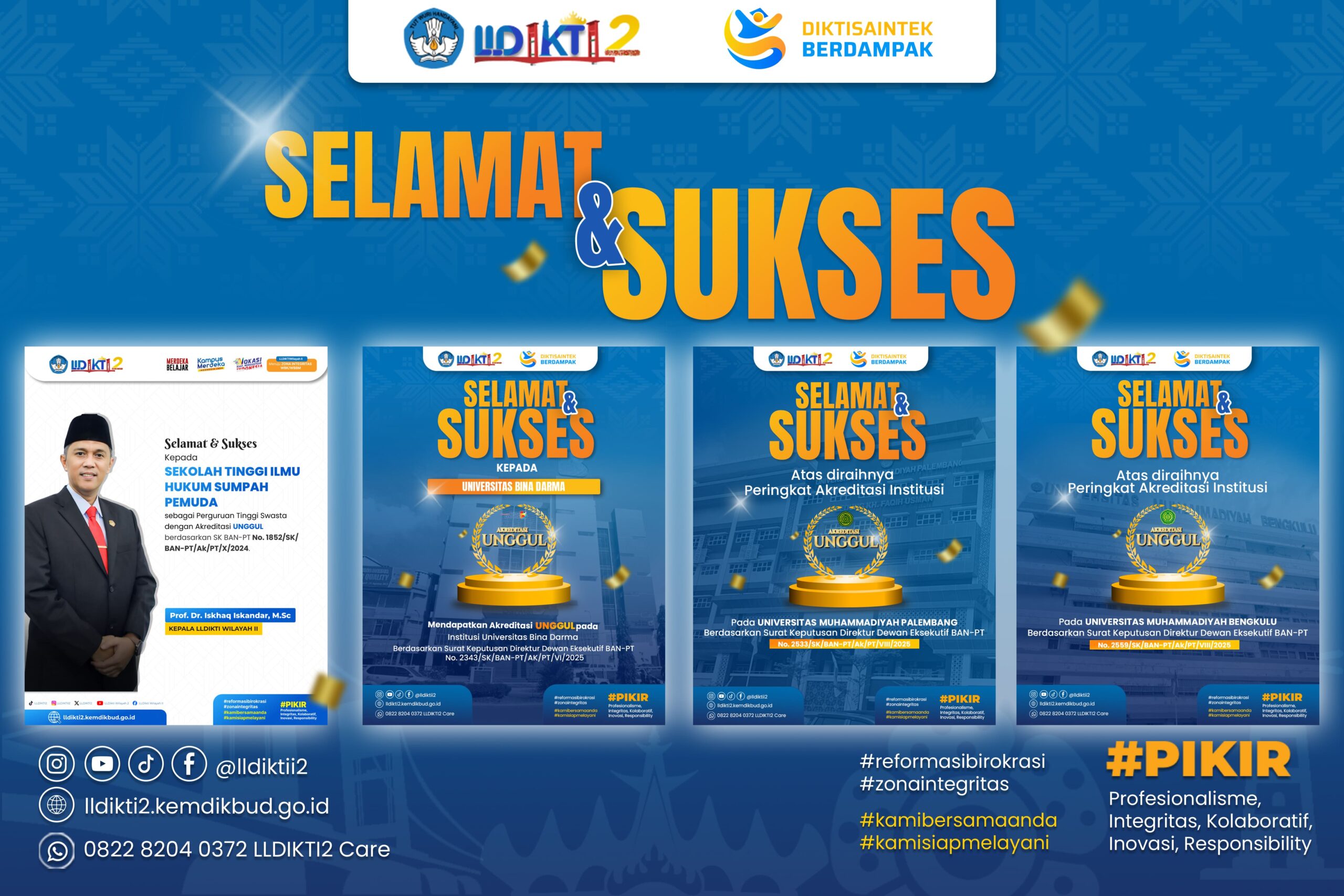 Palembang – Komitmen Lembaga Layanan Pendidikan Tinggi (LLDIKTI) Wilayah II dalam meningkatkan mutu perguruan tinggi swasta (PTS) di wilayahnya kembali membuahkan hasil gemilang. Tahun ini,